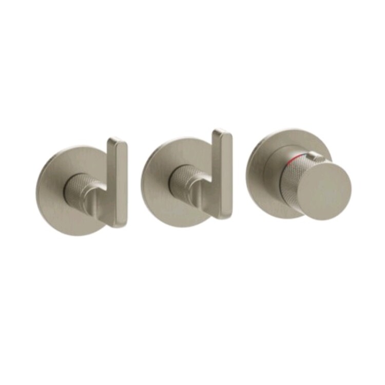 Смеситель для душа, Gessi, Inciso Bath&Shower, на 2 потребителя, тип открывания воды-вентильный, тип регулирования воды-термостатический картридж, монтаж-настенный встраиваемый, отверстия для монтажа-3, установка-вертикальная/горизонтальная, внутренняя часть-необходимо заказать, цвет-Finox Brushed Nickel Смеситель для душа, Gessi, Inciso Bath&Shower, на 2 потребителя, цвет-Finox Brushed Nickel