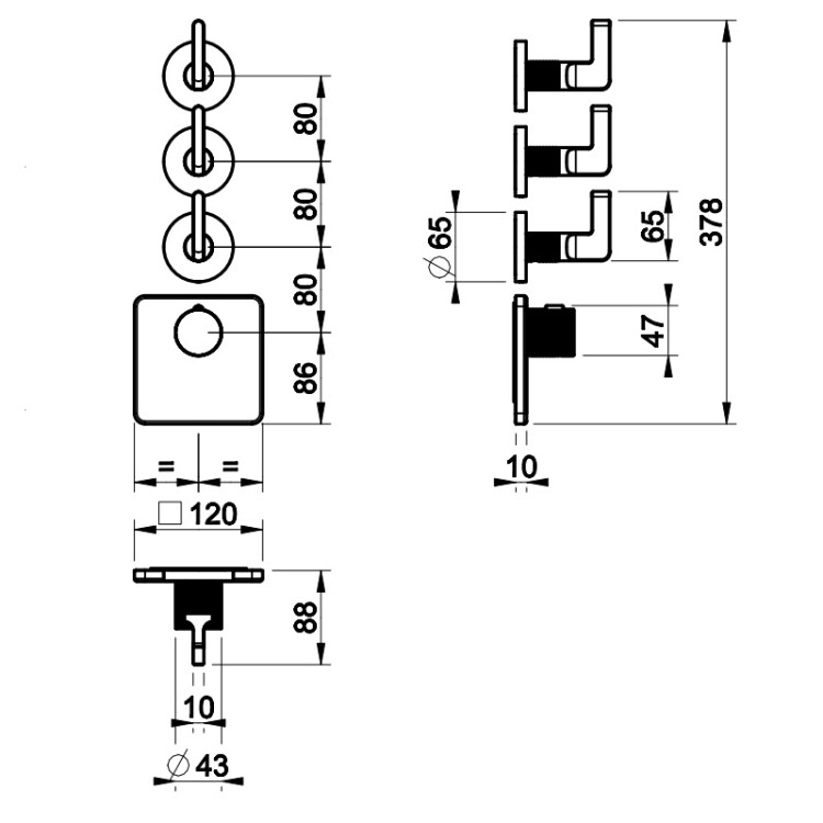 Смеситель для душа, Gessi, Inciso Bath&Shower, на 3 потребителя, тип открывания воды-вентильный, тип регулирования воды-термостатический картридж, монтаж-настенный встраиваемый, отверстия для монтажа-4, установка-вертикальная/горизонтальная, внутренняя часть-необходимо заказать, цвет-Finox Brushed Nickel Смеситель для душа, Gessi, Inciso Bath&Shower, на 3 потребителя, цвет-Finox Brushed Nickel