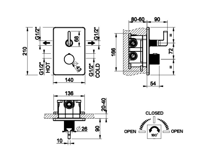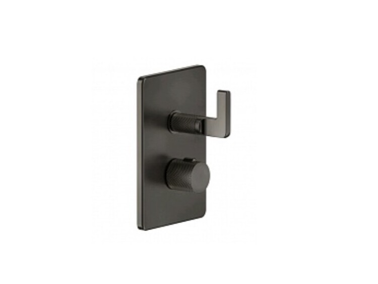 Смеситель для душа, Gessi, Inciso, тип открывания воды-однорычажный, тип регулирования воды-термостатический картридж, тип установки-встраиваемый, внутренняя часть-необходимо заказать, цвет-Black Metal Brushed PVD, с подключением на 1/2", фильтрами, вентилем с керамическими дисками, на две позиции на 1/2" Смеситель для душа, Gessi, Inciso, цвет-Black Metal Brushed PVD