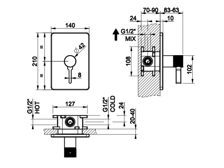 Смеситель для душа, Gessi, Inciso, тип открывания воды-однорычажный, тип установки-встраиваемый, внутренняя часть-необходимо заказать, цвет-Brushed Brass PVD Смеситель для душа, Gessi, Inciso, цвет-Brushed Brass PVD