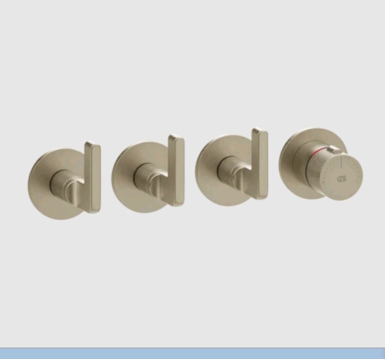 Смеситель для душа, Gessi, Inciso, на 3 потребителя, тип открывания воды-однорычажный, тип регулирования воды-термостатический картридж, монтаж-настенный встраиваемый, установка-вертикальнаяя/горизонтальная, отверстия для монтажа-4, внутренняя часть-необходимо заказать, цвет-Finox Brushed Nickel Смеситель для душа, Gessi, Inciso, на 3 потребителя, цвет-Finox Brushed Nickel