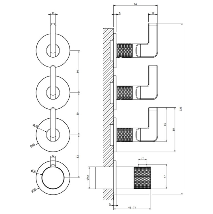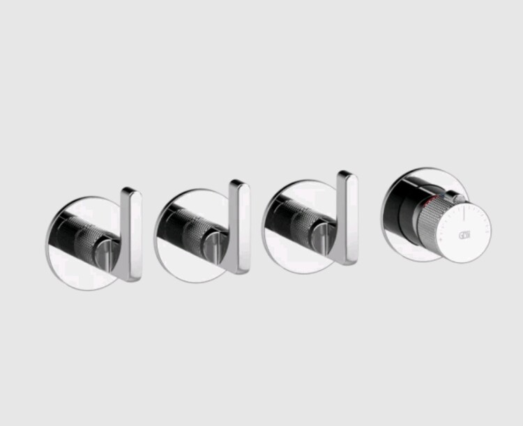 Смеситель для душа, Gessi, Inciso, на 3 потребителя, тип открывания воды-однорычажный, тип регулирования воды-термостатический картридж, монтаж-настенный встраиваемый, установка-вертикальнаяя/горизонтальная, отверстия для монтажа-4, внутренняя часть-необходимо заказать, цвет-хром Смеситель для душа, Gessi, Inciso, на 3 потребителя, цвет-хром
