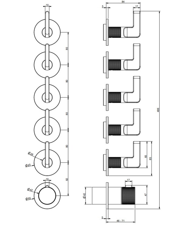 Смеситель для душа, Gessi, Inciso Shower, на 5 потребителей, тип открывания воды-однорычажный, тип регулирования воды-термостатический картридж, монтаж-настенный встраиваемый, установка-вертикальная/горизонтальная, внутренняя часть-необходимо заказать, цвет-Aged Bronze Смеситель для душа, Gessi, Inciso Shower, на 5 потребителей, цвет-Aged Bronze