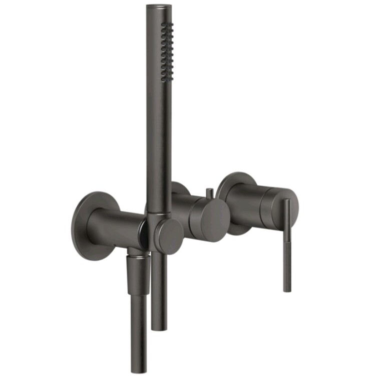 Смеситель для душа, Gessi, Ingranaggio, на 2 потребителя, тип открывания воды-однорычажный, тип регулирования воды-керамический картридж, монтаж-настенный встраиваемый, отверстия для монтажа-3, в комплекте-переключатель, ручной душ, держатель ручного душа с подводом воды, шланг, мм-1500, внутренняя часть-необходимо заказать, цвет-Black Metal Brushed PVD Смеситель для душа, Gessi, Ingranaggio, на 2 потребителя, цвет-Black Metal Brushed PVD