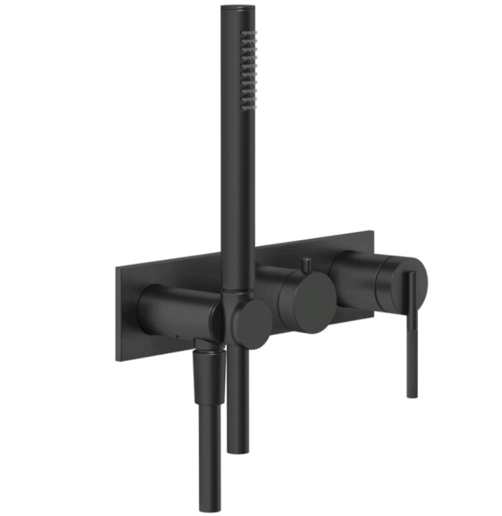 Смеситель для душа, Gessi, Ingranaggio, на 2 потребителя, тип открывания воды-однорычажный, тип регулирования воды-керамический картридж, монтаж-настенный встраиваемый, отверстия для монтажа-3, в комплекте-переключатель, ручной душ, держатель ручного душа с подводом воды. шланг, мм-1500, внутренняя часть-необходимо заказать, цвет-черный матовый Смеситель для душа, Gessi, Ingranaggio, на 2 потребителя, цвет-черный матовый