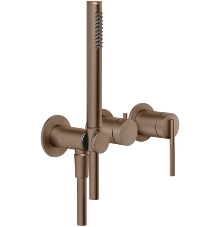 Смеситель для душа, Gessi, Ingranaggio, на 2 потребителя, тип открывания воды-однорычажный, тип регулирования воды-керамический картридж, монтаж-настенный встраиваемый, отверстия для монтажа-3, в комплекте-переключатель, ручной душ, держатель ручного душа с подводом воды, шланг, мм-1500, внутренняя часть-необходимо заказать, цвет-Copper Brushed PVD Смеситель для душа, Gessi, Ingranaggio, на 2 потребителя, цвет-Copper Brushed PVD
