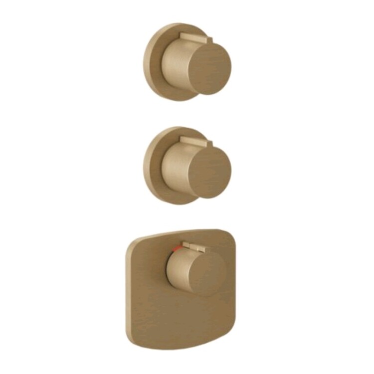 Смеситель для душа, Gessi, на 2 потребителя, тип открывания воды-вентильный, тип регулирования воды-термостатический картридж, монтаж-настенный встраиваемый, отверстия для монтажа-3, установка-вертикальная/горизонтальная, пластины-отдельные, внутренняя часть-необходимо заказать, цвет-Warm Bronze Brushed PVD Смеситель для душа, Gessi, на 2 потребителя, цвет-Warm Bronze Brushed PVD