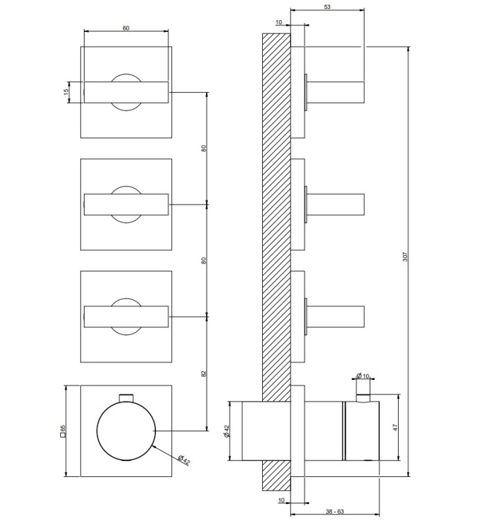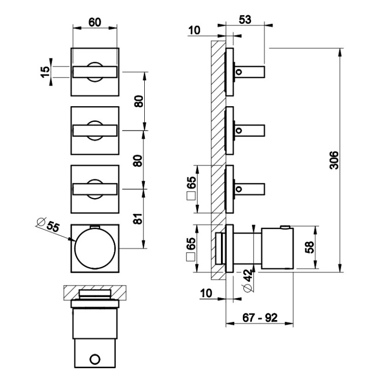 Смеситель для душа, Gessi, на 3 потребителя, тип открывания воды-вентильный, тип регулирования воды-термостатический картридж, монтаж-настенный встраиваемый, отверстия для монтажа-4, установка -вертикальная/горизонтальная, внутренняя часть-необходимо заказать, цвет-Black Metal Brushed PVD Смеситель для душа, Gessi, на 3 потребителя, цвет-Black Metal Brushed PVD