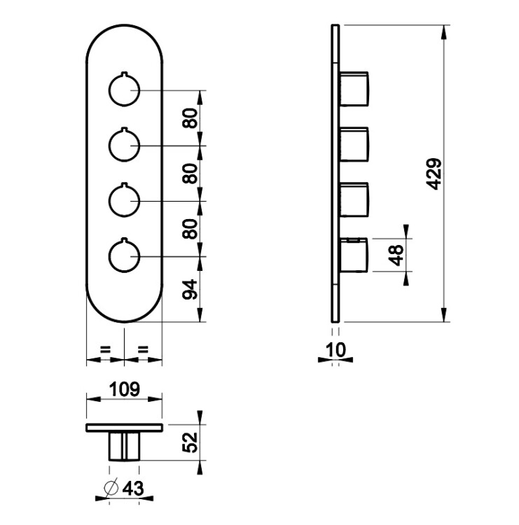 Смеситель для душа, Gessi, на панели, на 3 потребителя, тип открывания воды-вентильный, тип регулирования воды-термостатический картридж, монтаж-настенный встраиваемый, отверстия для монтажа-4, установка-вертикальная/горизонтальная, внутренняя часть-необходимо заказать, цвет-хром Смеситель для душа, Gessi, на 3 потребителя, цвет-хром