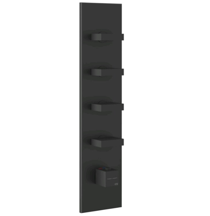 Смеситель для душа, Gessi, на панели, на 4 потребителя, тип открывания воды-вентильный, тип регулирования воды-термостатический картридж, монтаж-настенный встраиваемый, отверстия для монтажа-5, установка-вертикальная/горизонтальная, внутренняя часть-необходимо заказать, цвет-черный матовый Смеситель для душа, Gessi, на 4 потребителя, цвет-черный матовый