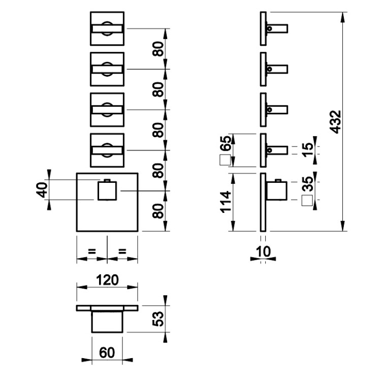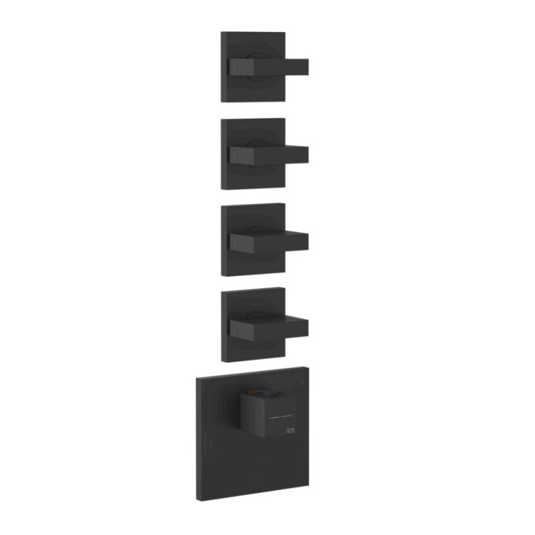 Смеситель для душа, Gessi, на 4 потребителя, тип открывания воды-вентильный, тип регулирования воды-термостатический картридж, монтаж-настенный встраиваемый, отверстия для монтажа-5, установка-вертикальная/горизонтальная, внутренняя часть-необходимо заказать, цвет-черный матовый Смеситель для душа, Gessi, на 4 потребителя, цвет-черный матовый