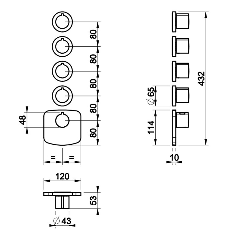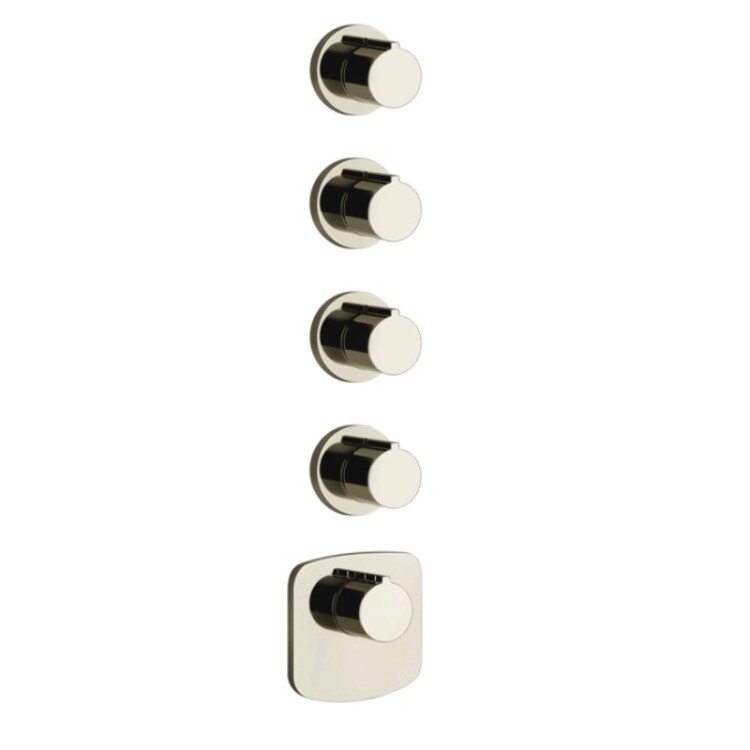 Смеситель для душа, Gessi, на 4 потребителя, тип открывания воды-вентильный, тип регулирования воды-термостатический картридж, монтаж-настенный встраиваемый, отверстия для монтажа-5, установка-вертикальная/горизонтальная, пластины-отдельные, внутренняя часть-необходимо заказать, цвет-Nickel PVD Смеситель для душа, Gessi, на 4 потребителя, цвет-Nickel PVD