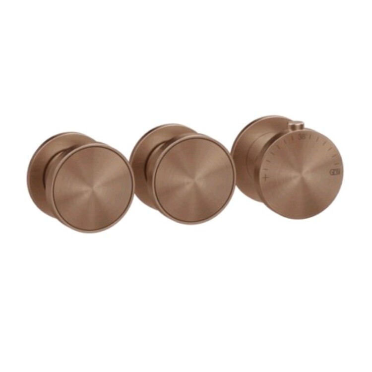 Смеситель для душа, Gessi, Origini, на 2 потребителя, тип открывания воды-однорычажный, тип регулирования воды-термостатический картридж, монтаж-настенный встраиваемый, отверстия для монтажа-3, установка-вертикальная/горизонтальная, может сочетаться со вставками с различной отделкой, внутренняя часть-необходимо заказать, цвет-Copper Brushed PVD Смеситель для душа, Gessi, Origini, на 2 потребителя, цвет-Copper Brushed PVD