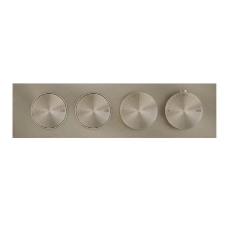 Смеситель для душа, Gessi, Origini, на 2 потребителя, тип открывания воды-нажимной (кнопки), тип регулирования воды-термостатический картридж, монтаж-настенный встраиваемый, отверстия для монтажа-4, можно комбинировать со вставками с различной отделкой, внутренняя часть-необходимо заказать, цвет-Finox Brushed Nickel Смеситель для душа, Gessi, Origini, на 2 потребителя, цвет-Finox Brushed Nickel