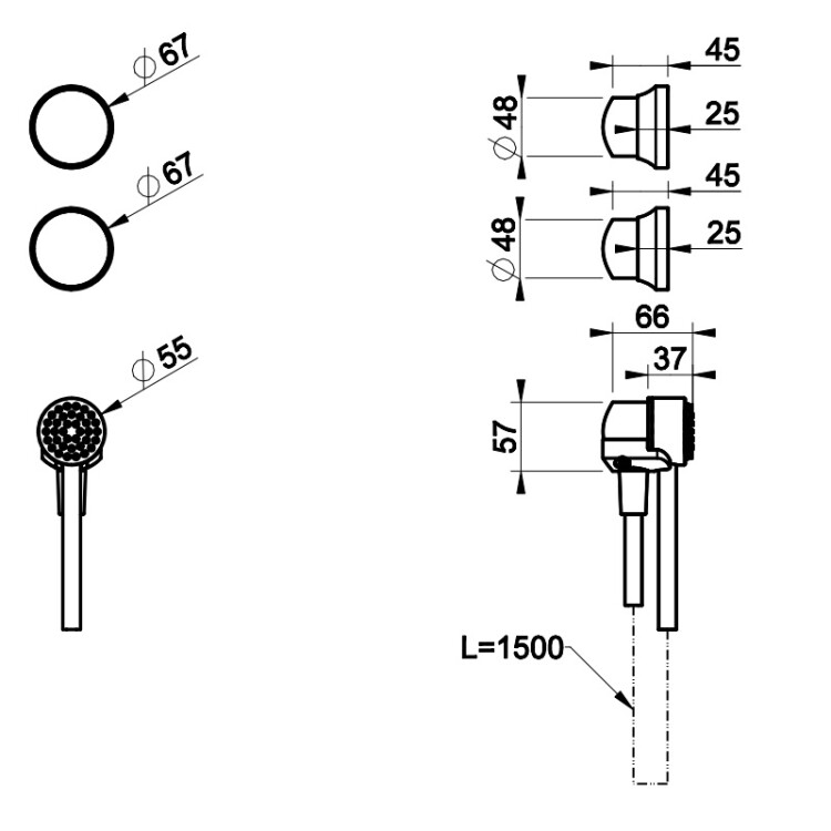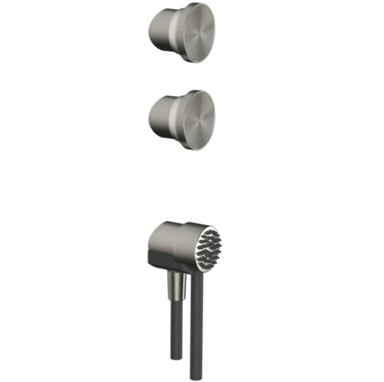 Смеситель для душа, Gessi, Origini, на 2 потребителя, тип открывания воды-однорычажный, тип регулирования воды-керамический картридж, монтаж-на душевую стойку, отверстия для монтажа-3, в комплекте-ручной душ, шланг, мм-1500, цвет-Steel Brushed Смеситель для душа, Gessi, Origini, на 2 потребителя, цвет-Steel Brushed