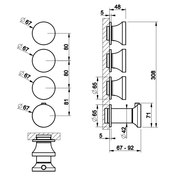Смеситель для душа, Gessi, Origini, на 3 потребителя, тип открывания воды-однорычажный, тип регулирования воды-термостатический картридж, монтаж-настенный встраиваемый, отверстия для монтажа-4, установка-вертикальная/горизонтальная, можно комбинировать со вставками с различной отделкой, внутренняя часть-необходимо заказать, цвет-Brushed Brass PVD Смеситель для душа, Gessi, Origini, на 3 потребителя, цвет-Brushed Brass PVD