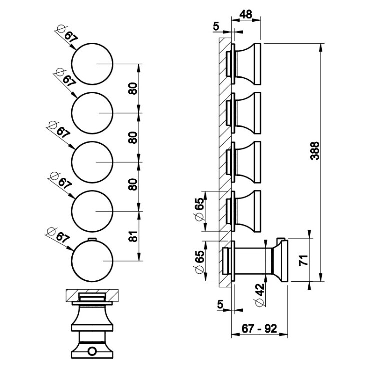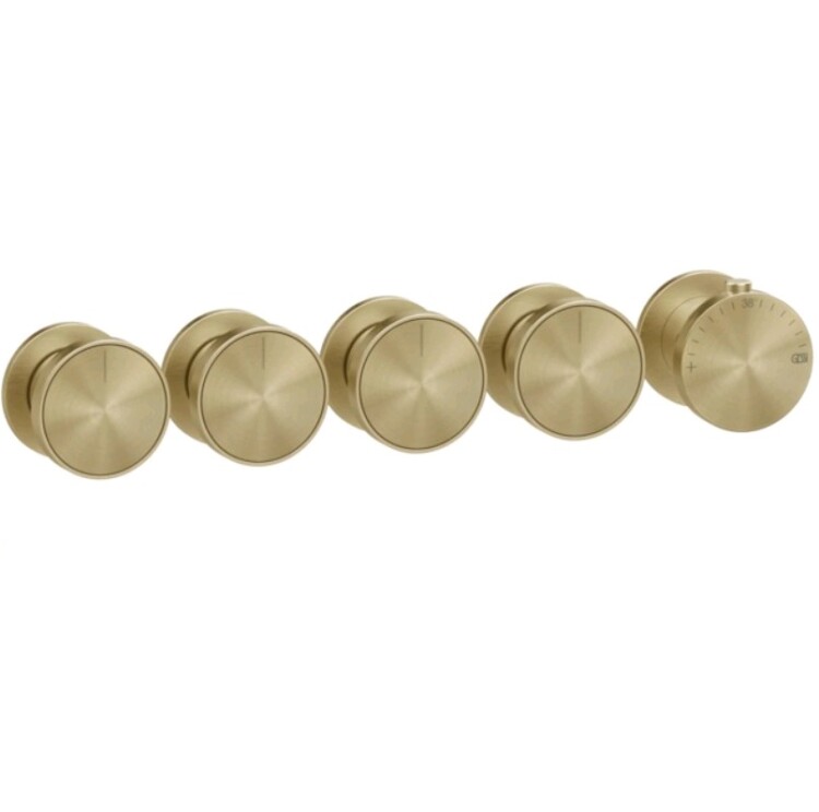 Смеситель для душа, Gessi, Origini, на 4 потребителя, тип открывания воды-однорычажный, тип регулирования воды-термостатический картридж, монтаж-настенный встраиваемый, отверстия для монтажа-5, установка-вертикальная/горизонтальная, можно комбинировать со вставками с различной отделкой, внутренняя часть-необходимо заказать, цвет-Brushed Brass PVD Смеситель для душа, Gessi, Origini, на 4 потребителя, цвет-Brushed Brass PVD