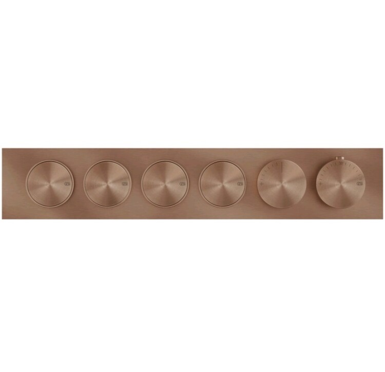 Смеситель для душа, Gessi, Origini, на 4 потребителя, тип открывания воды-нажимной (кнопки), тип регулирования воды-термостатический картридж, монтаж-настенный встраиваемый, отверстия для монтажа-6, можно комбинировать со вставками с различной отделкой, внутренняя часть-необходимо заказать, цвет-Copper Brushed PVD Смеситель для душа, Gessi, Origini, на 4 потребителя, цвет-Copper Brushed PVD