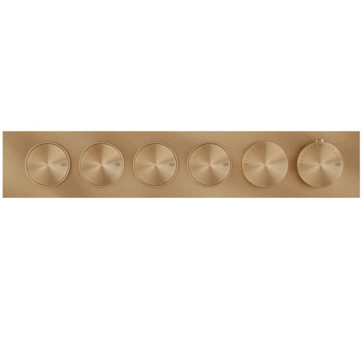 Смеситель для душа, Gessi, Origini, на 4 потребителя, тип открывания воды-нажимной (кнопки), тип регулирования воды-термостатический картридж, монтаж-настенный встраиваемый, отверстия для монтажа-6, можно комбинировать со вставками с различной отделкой, внутренняя часть-необходимо заказать, цвет-Warm Bronze Brushed PVD Смеситель для душа, Gessi, Origini, на 4 потребителя, цвет-Warm Bronze Brushed PVD