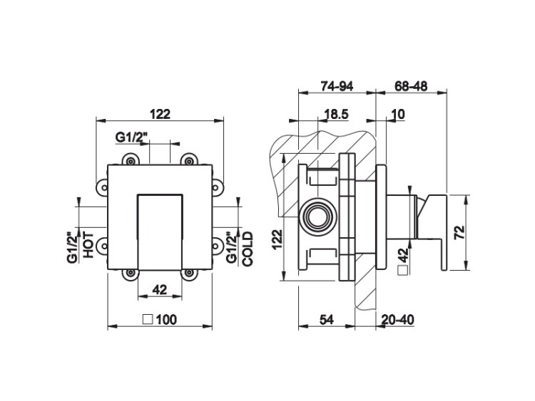 Смеситель для душа, Gessi, Rettangolo, тип открывания воды-однорычажный, тип установки-встраиваемый, отверстия для монтажа-1, внутренняя часть-необходимо заказать, цвет-Black Metal PVD, на 1/2”, картридж,мм- Ø35 Смеситель для душа, Gessi, Rettangolo, цвет-Black Metal PVD