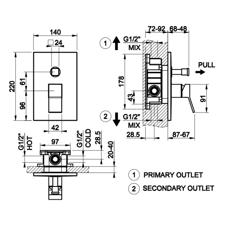 Смеситель для душа, Gessi, Rettangolo K, на 2 потребителя, тип открывания воды-однорычажный, тип регулирования воды-керамический картридж, монтаж-настенный встраиваемый, отверстия для монтажа-1, внутренняя часть-необходимо заказать, цвет-Warm Bronze Brushed PVD Смеситель для душа, Gessi, Rettangolo K, на 2 потребителя, цвет-Warm Bronze Brushed PVD