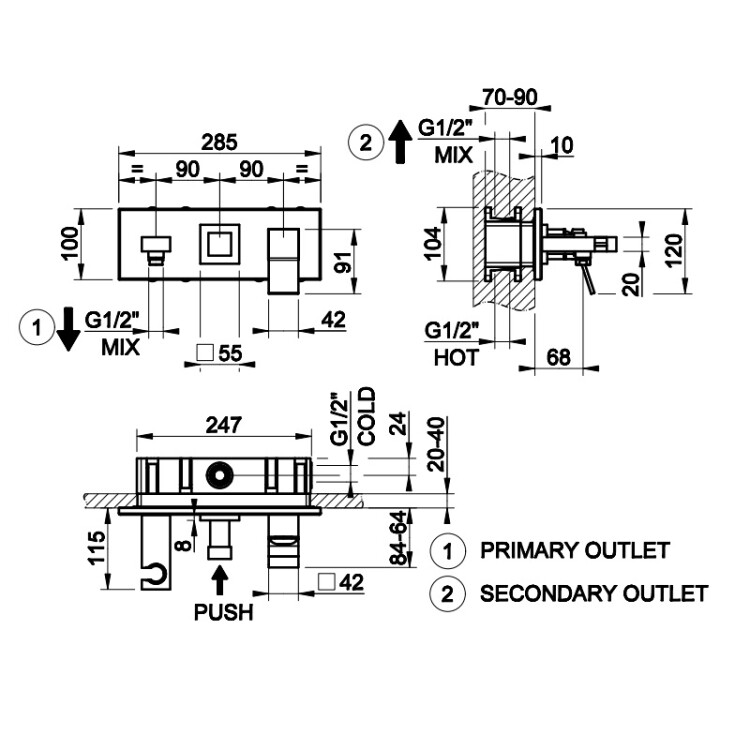 Смеситель для душа, Gessi, Rettangolo K, на 2 потребителя, тип открывания воды-однорычажный, тип регулирования воды-керамический картридж, монтаж-настенный встраиваемый, отверстия для монтажа-3, в комплекте-переключатель, держатель ручного душа с подводом воды, необходимо заказать-внутренняя часть, ручной душ со шлангом, цвет-Warm Bronze Brushed PVD Смеситель для душа, Gessi, Rettangolo K, на 2 потребителя, цвет-Warm Bronze Brushed PVD