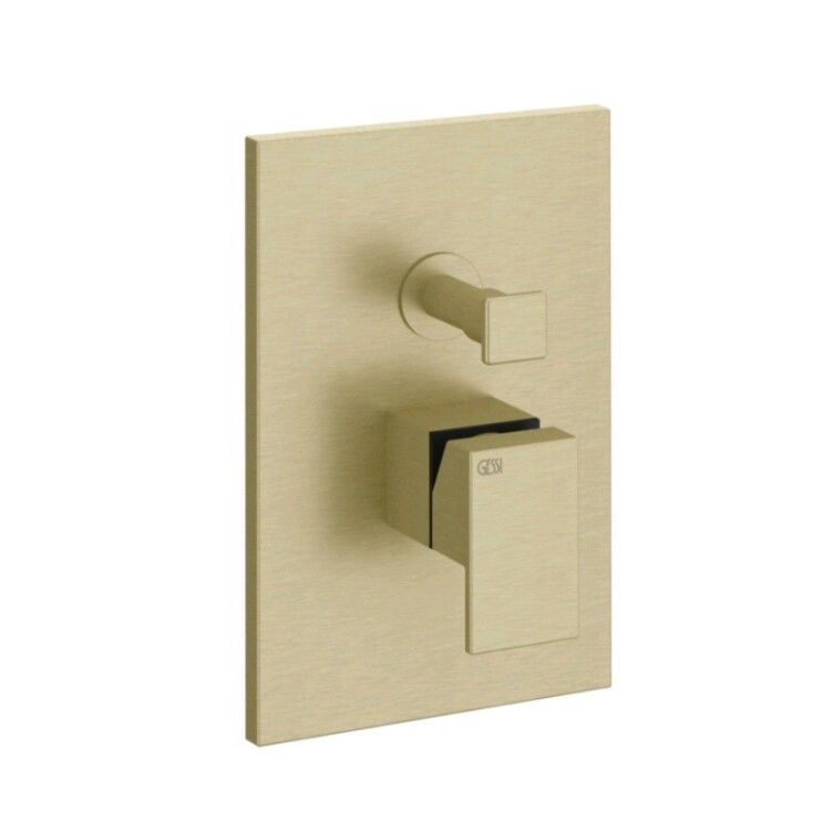 Смеситель для душа, Gessi, Rettangolo, на 2 потребителя, с автоматическим переключателем ванна-душ , тип открывания воды-однорычажный, тип регулирования воды-керамический картридж, монтаж-настенный встраиваемый, отверстия для монтажа-1, внутренняя часть-необходимо заказать, цвет-Brushed Brass PVD Смеситель для душа, Gessi, Rettangolo, на 2 потребителя, цвет-Brushed Brass PVD