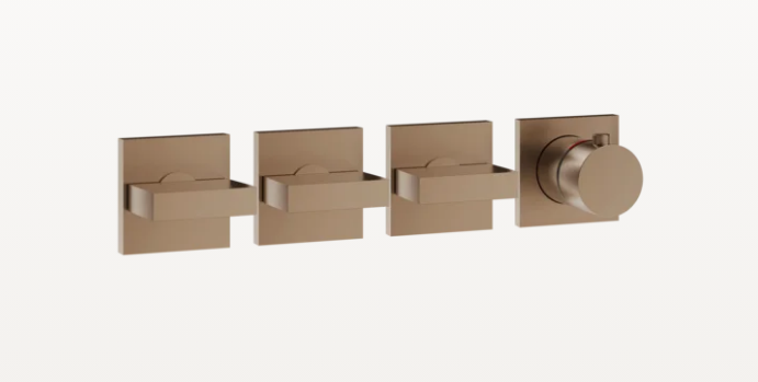 Смеситель для душа, Gessi, Rettangolo, на 3 потребителя, тип открывания воды-вентильный, тип регулирования воды-термостатический картридж, монтаж-настенный встраиваемый, установка-вертикальная/горизонтальная, отверстия для монтажа-4, внутренняя часть-необходимо заказать, цвет-Copper Brushed PVD Смеситель для душа, Gessi, Rettangolo, на 3 потребителя, цвет-Copper Brushed PVD