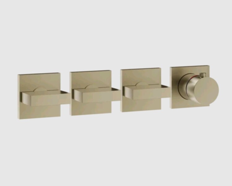 Смеситель для душа, Gessi, Rettangolo, на 3 потребителя, тип открывания воды-вентильный, тип регулирования воды-термостатический картридж, монтаж-настенный встраиваемый, установка-вертикальная/горизонтальная, отверстия для монтажа-4, внутренняя часть-необходимо заказать, цвет-Finox Brushed Nickel Смеситель для душа, Gessi, Rettangolo, на 3 потребителя, цвет-Finox Brushed Nickel