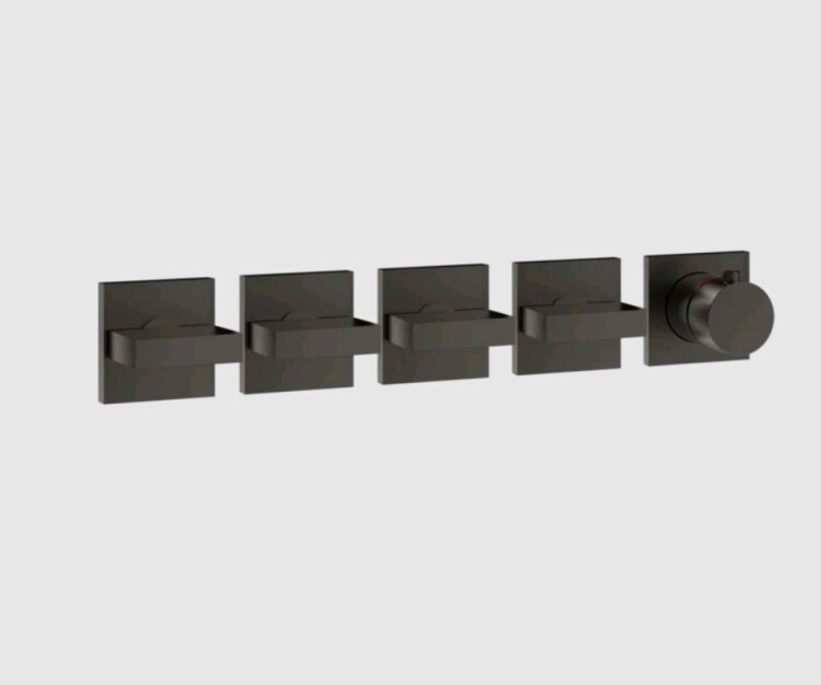 Смеситель для душа, Gessi, Rettangolo, на 4 потребителя, тип открывания воды-однорычажный, тип регулирования воды-термостатический картридж, монтаж-настенный встраиваемый, установка-вертикальная/горизонтальная, отверстия для монтажа-5, внутренняя часть-необходимо заказать, цвет-Black Metal Brushed PVD Смеситель для душа, Gessi, Rettangolo, на 4 потребителя, цвет-Black Metal Brushed PVD
