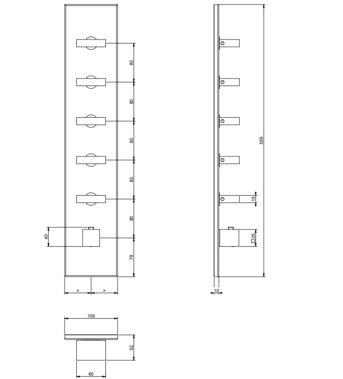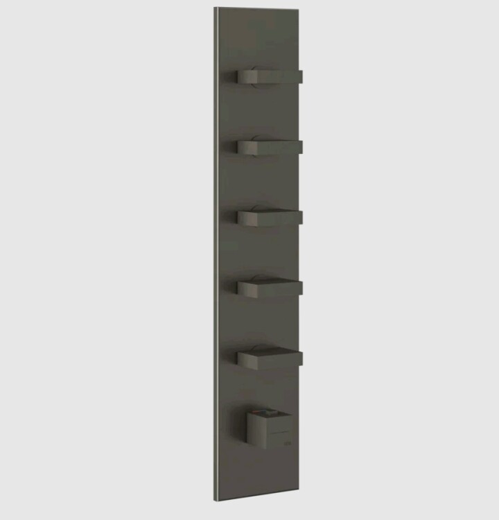 Смеситель для душа, Gessi, Rettangolo, на 5 потребителей, тип открывания воды-вентильный, тип регулирования воды-термостатический картридж, монтаж-настенный встраиваемый, с вертикальной/горизонтальной установкой, отверстия для монтажа-6, внутренняя часть-необходимо заказать, цвет-Black Metal Brushed PVD Смеситель для душа, Gessi, Rettangolo, на 5 потребителей, цвет-Black Metal Brushed PVD