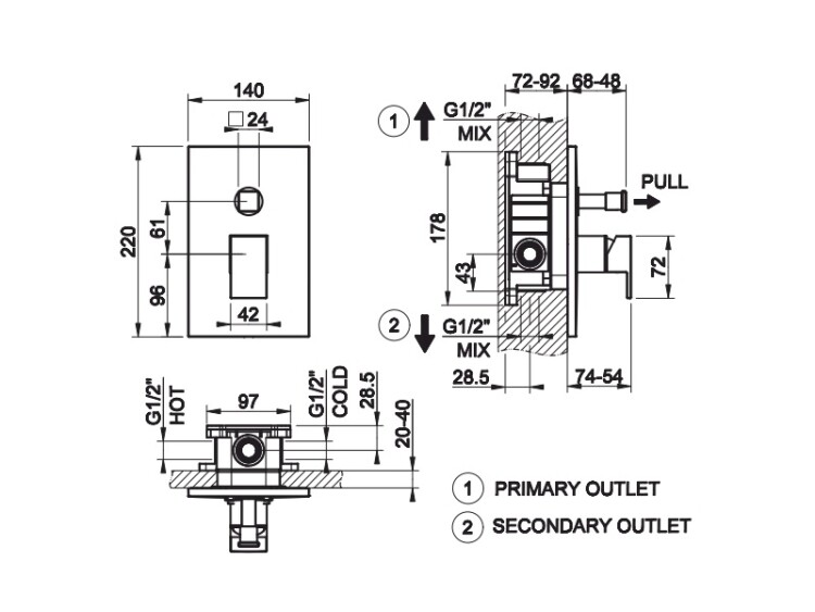 Смеситель для душа, Gessi, Rettangolo shower, тип открывания воды-однорычажный, тип установки-встраиваемый, внутренняя часть-необходимо заказать, цвет-хром, комплектация-автоматический переключатель ванна/душ Смеситель для душа, Gessi, Rettangolo shower, цвет-хром