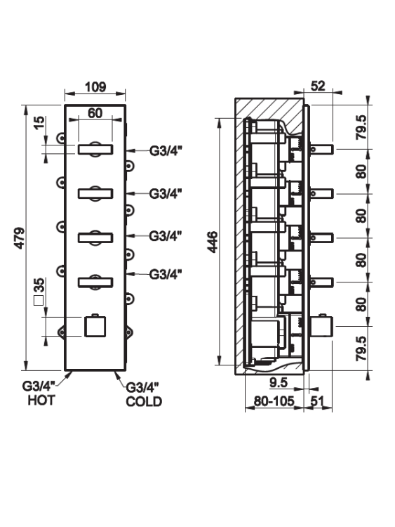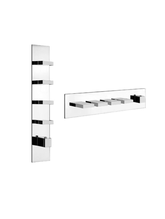 Смеситель для душа, Gessi, Rettangolo Wellness, тип открывания воды-вентильный, тип регулирования воды-термостатический картридж, тип установки-встраиваемый, отверстия для монтажа-5, материал ручки-металл, цвет ручки-в цвет смесителя, внутренняя часть-необходимо заказать, цвет-хром Смеситель для душа, Gessi, Rettangolo Wellness, цвет-хром