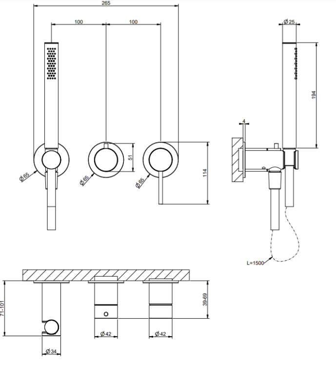 Смеситель для душа, Gessi, Shower316, тип открывания воды-однорычажный, тип регулирования воды-керамический картридж, монтаж-настенный встраиваемый, отверстия для монтажа-3, внутренняя часть-необходимо заказать, в комплекте-с переключателем, подводом воды и держателем лейки, цвет-Black XL Смеситель для душа, Gessi, Shower316, цвет-Black XL