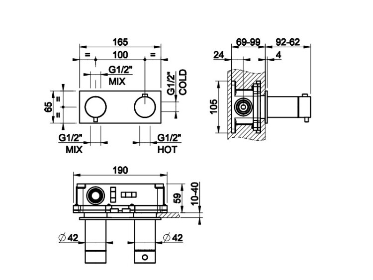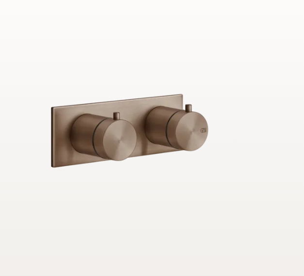 Смеситель для душа, Gessi, Shower316, тип открывания воды-однорычажный, тип регулирования воды-термостатический картридж, тип установки-настенный, внутренняя часть-необходимо заказать, цвет-Copper Brushed PVD, с подключением на 3/4", фильтрами и переключателем с керамическими дисками, на две позиции на 1/2" Смеситель для душа, Gessi, Shower316, цвет-Copper Brushed PVD