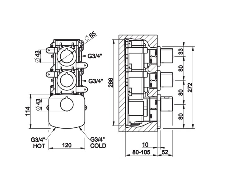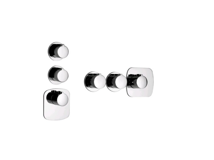 Смеситель для душа, Gessi, Tondo Wellness, тип регулирования воды-термостатический картридж, тип установки-встраиваемый, внутренняя часть-необходимо заказать, цвет-хром, подключение на 3/4”, с вертикальной/горизонтальной установкой, с двумя независимыми выходами Смеситель для душа, Gessi, Tondo Wellness, цвет-хром