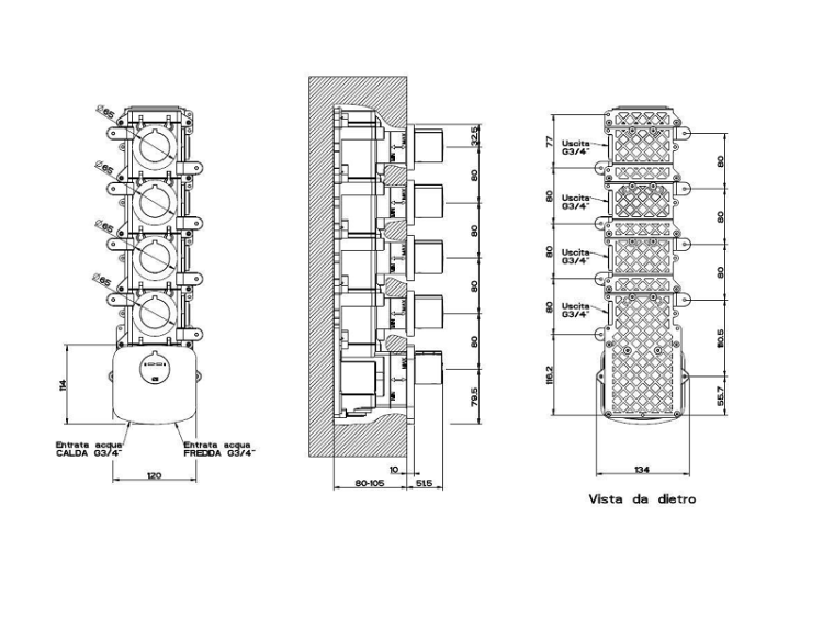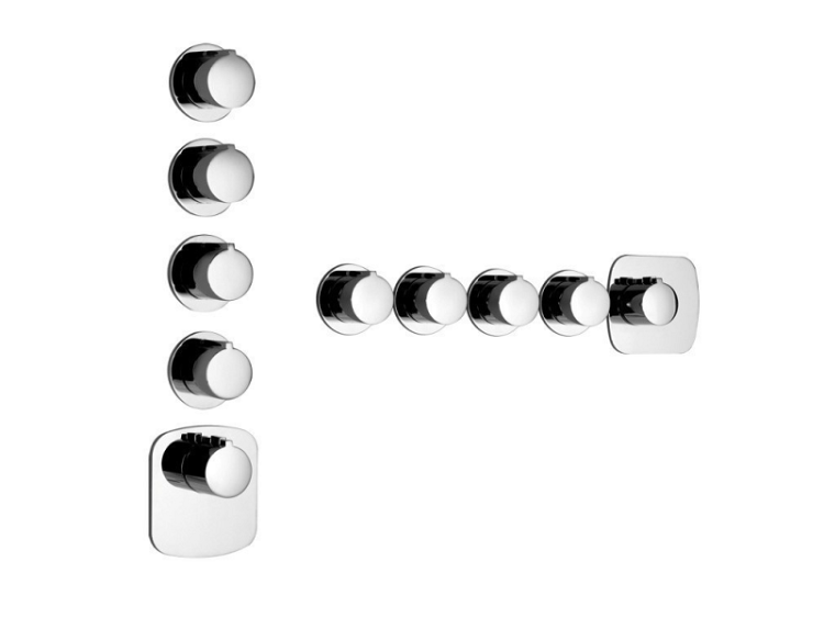 Смеситель для душа, Gessi, Tondo Wellness, тип регулирования воды-термостатический картридж, монтаж-вертикальный (настенный), отверстия для монтажа-5, внутренняя часть-необходимо заказать, цвет-хром, впуски 3/4" Смеситель для душа, Gessi, Tondo Wellness, цвет-хром