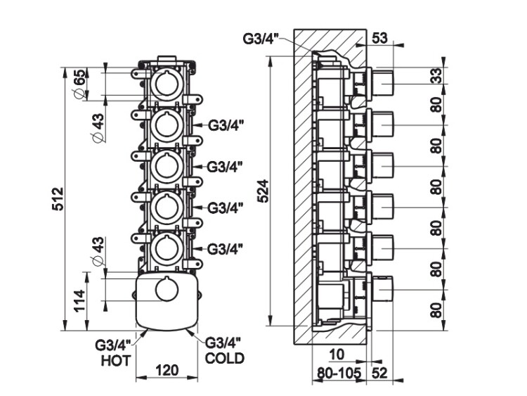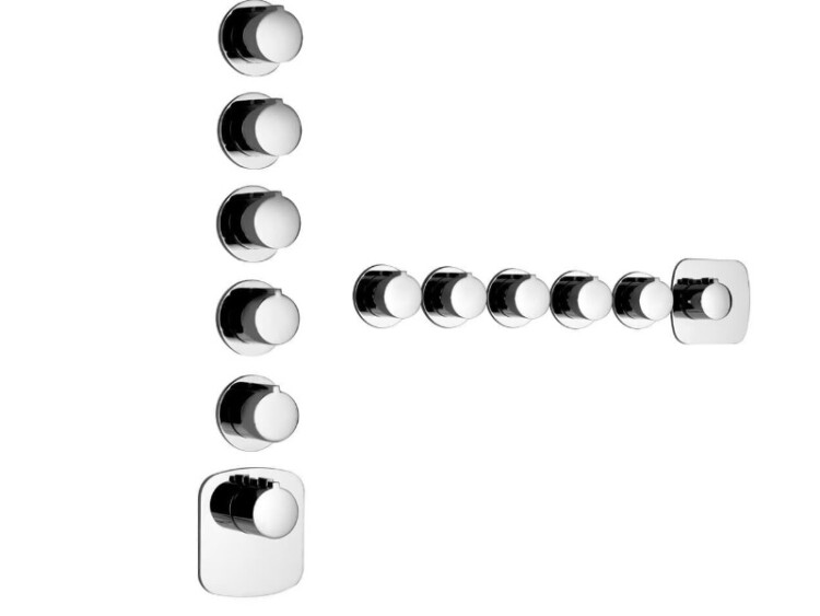 Смеситель для душа, Gessi, Tondo Wellness, тип регулирования воды-термостатический картридж, тип установки-встраиваемый, внутренняя часть-необходимо заказать, цвет-хром, подключение на 3/4", с вертикальной/ горизонтальной установкой, с пятью независимыми выходами Смеситель для душа, Gessi, Tondo Wellness, цвет-хром