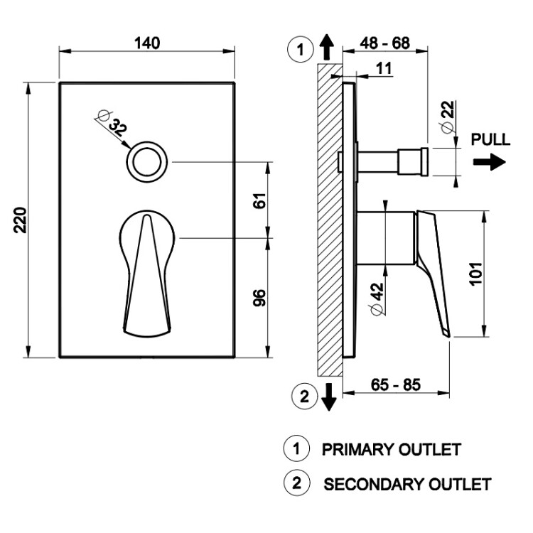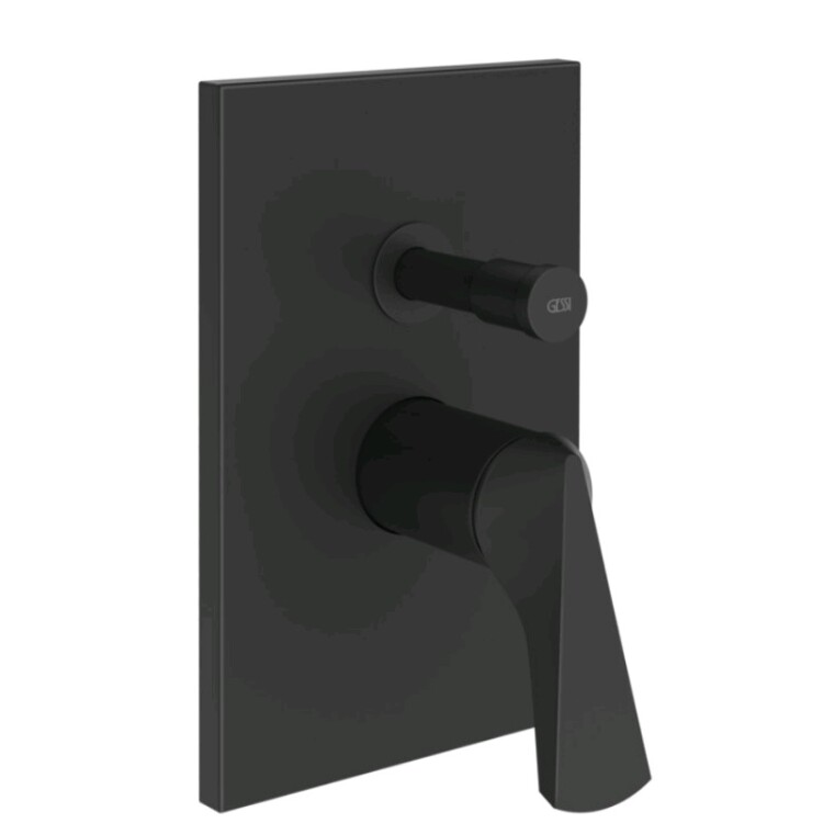 Смеситель для душа, Gessi, Ventaglio, на 2 потребителя, с переключателем ванна/душ, тип открывания воды-однорычажный, тип регулирования воды-керамический картридж, монтаж-настенный, отверстия для монтажа-1, внутренняя часть-необходимо заказать, цвет-черный матовый Смеситель для душа, Gessi, Ventaglio, на 2 потребителя, цвет-черный матовый