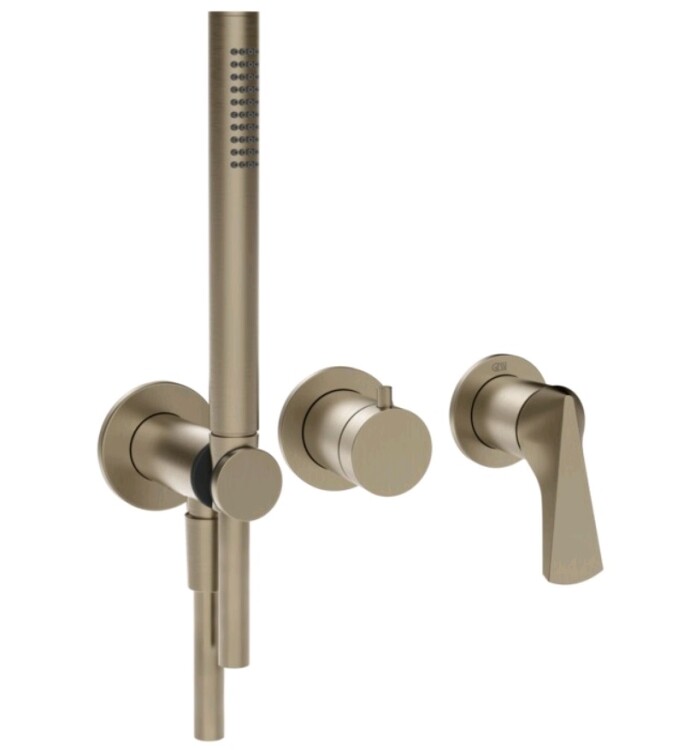 Смеситель для душа, Gessi, Ventaglio, на 2 потребителя, тип открывания воды-однорычажный, тип регулирования воды-керамический картридж, монтаж-настенный встраиваемый, отверстия для монтажа-3, в комплекте-переключатель, ручной душ одноструйный, ддержатель ручного душа с подводом воды, шланг ПВХ, мм-1500, внутренняя часть-необходимо заказать, цвет-Finox Brushed Nickel Смеситель для душа, Gessi, Ventaglio, на 2 потребителя, цвет-Finox Brushed Nickel