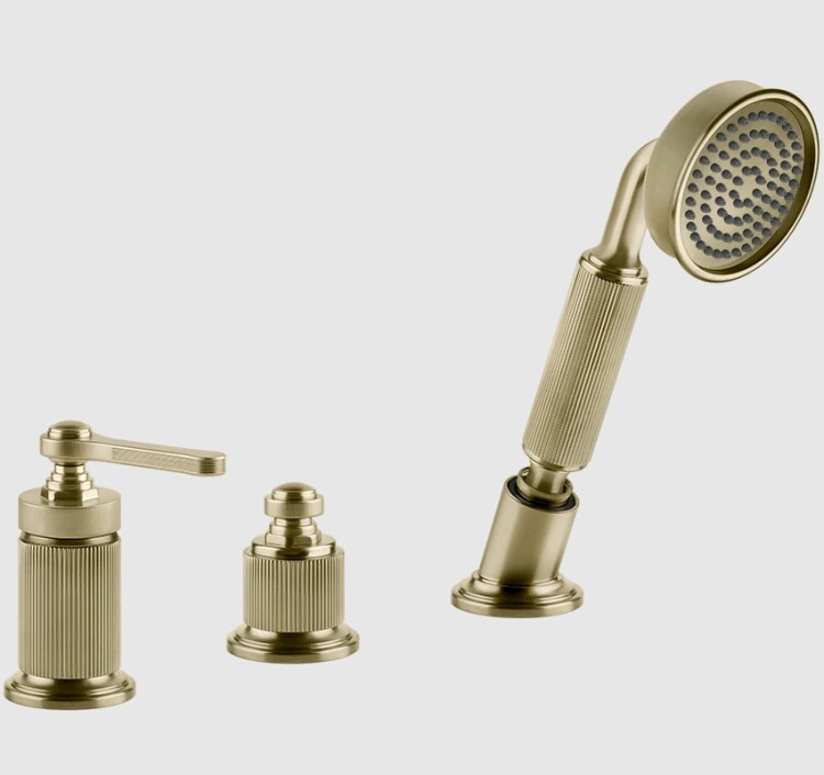 Смеситель для душа, Gessi, VENTI20, на 2 потребителя, тип открывания воды-однорычажный, тип регулирования воды-керамический картридж, монтаж-на борт ванны, отверстия для монтажа-3, в комплекте-переключатель, ручной душ вытяжной, одноструйный, размер ручного душа, мм-78, металлический шланг, мм-1500, гибкие подающие шланги, цвет-Brushed Brass PVD Смеситель для душа, Gessi, VENTI20, на 2 потребителя, цвет-Brushed Brass PVD