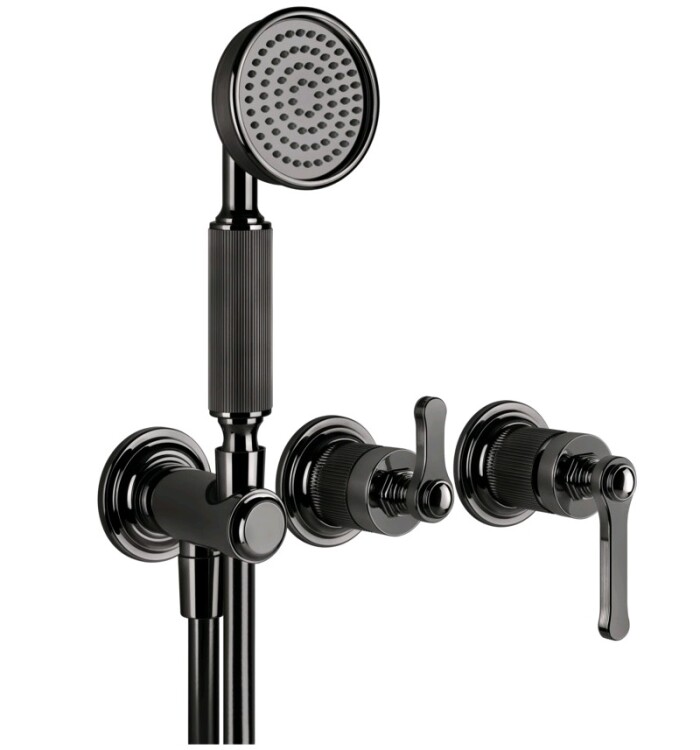 Смеситель для душа, Gessi, VENTI20, на 2 потребителя, тип открывания воды-однорычажный, тип регулирования воды-керамический картридж, монтаж-настенный встраиваемый, отверстия для монтажа-3, в комплекте-переключатель, ручной душ одноструйный, размер ручного душа, мм-78, держатель ручного душа с подводом воды, шланг ПВХ, мм-1500, внутренняя часть-необходимо заказать, цвет-Black Metal PVD Смеситель для душа, Gessi, VENTI20, на 2 потребителя, цвет-Black Metal PVD