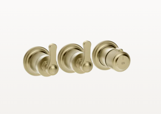 Смеситель для душа, Gessi, VENTI20, на 2 потребителя, тип открывания воды-вентильный, тип регулирования воды-термостатический картридж, монтаж-настенный встраиваемый, вертикальная/горизонтальная установка, отверстия для монтажа-3, внутренняя часть-необходимо заказать, цвет-Brushed Brass PVD Смеситель для душа, Gessi, VENTI20, на 2 потребителя, цвет-Brushed Brass PVD