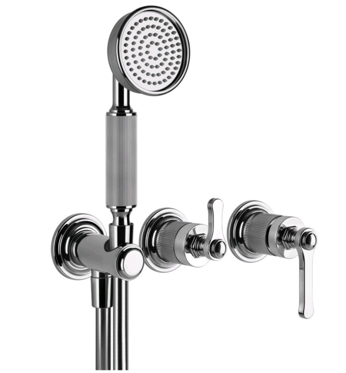 Смеситель для душа, Gessi, VENTI20, на 2 потребителя, тип открывания воды-однорычажный, тип регулирования воды-керамический картридж, монтаж-настенный встраиваемый, отверстия для монтажа-3, в комплекте-переключатель, ручной душ одноструйный, размер ручного душа, мм-78, держатель ручного душа с подводом воды, шланг ПВХ, мм-1500, внутренняя часть-необходимо заказать, цвет-хром Смеситель для душа, Gessi, VENTI20, на 2 потребителя, цвет-хром