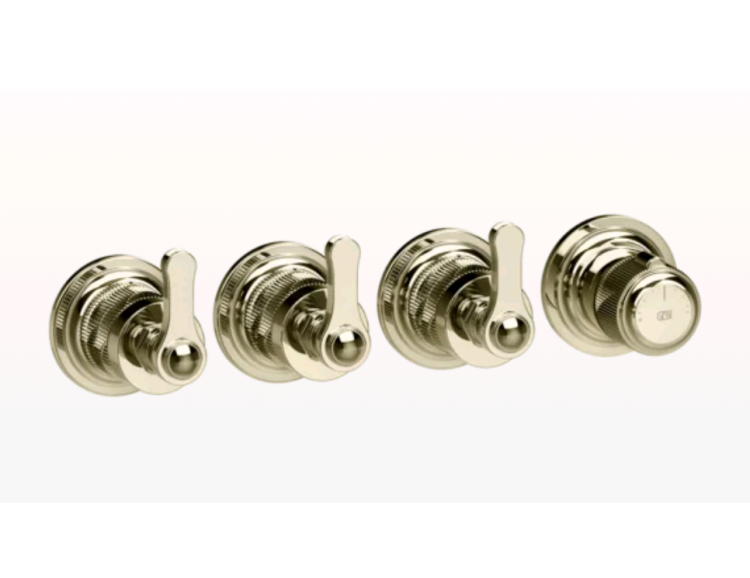 Смеситель для душа, Gessi, VENTI20, на 3 потребителя, тип открывания воды-рычажный, тип регулирования воды-термостатический картридж, монтаж-настенный встраиваемый, вертикальная/горизонтальная, отверстия для монтажа-4, внутренняя часть-необходимо заказать, цвет-латунь PVD (Brass PVD) Смеситель для душа, Gessi, VENTI20, на 3 потребителя, цвет-латунь PVD (Brass PVD)
