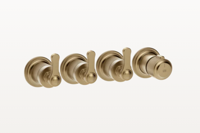 Смеситель для душа, Gessi, VENTI20, на 3 потребителя, тип открывания воды-однорычажный, тип регулирования воды-термостатический картридж, монтаж-настенный встраиваемый, отверстия для монтажа-4, внутренняя часть-необходимо заказать, цвет-Warm Bronze Brushed PVD Смеситель для душа, Gessi, VENTI20, на 3 потребителя, цвет-Warm Bronze Brushed PVD