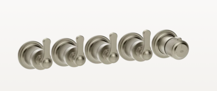 Смеситель для душа, Gessi, VENTI20, на 4 потребителя, тип открывания воды-вентильный, тип регулирования воды-термостатический картридж, монтаж-настенный встраиваемый, вертикальная/горизонтальная установка, отверстия для монтажа-5, внутренняя часть-необходимо заказать, цвет-Finox Brushed Nickel Смеситель для душа, Gessi, VENTI20, на 4 потребителя, цвет-Finox Brushed Nickel