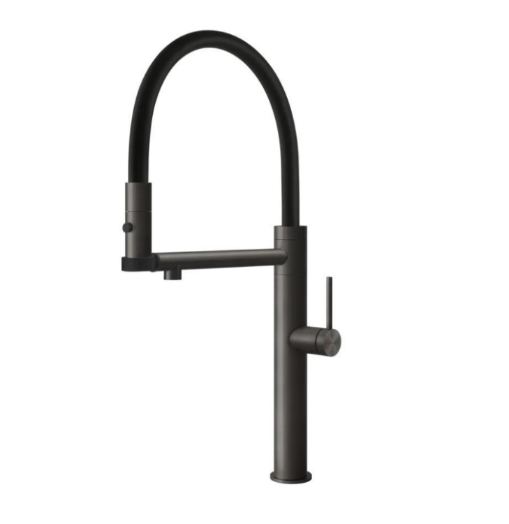 Смеситель для кухни, Gessi, 316 Flessa, тип открывания воды-однорычажный, тип регулирования воды-керамический картридж, монтаж-на раковину/столешницу, отверстия для монтажа-1, высота, мм-501, вынос излива, мм-237, тип излива-выдвижной, поворотный, тип подводки-гибкая, стандарт подвода воды-3/8", цвет-Black Metal Brushed PVD Смеситель для кухни, Gessi, 316 Flessa, цвет-Black Metal Brushed PVD