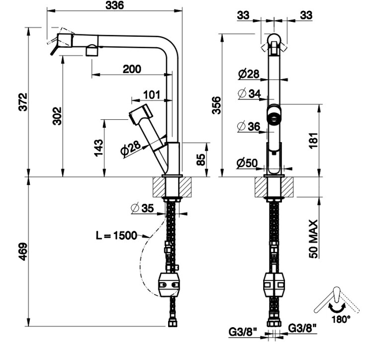 Смеситель для кухни, Gessi, Fisso, со съемный душем, тип открывания воды-однорычажный, тип регулирования воды-керамический картридж, монтаж-на раковину/столешницу, отверстия для монтажа-1, высота, мм-372, вынос излива, мм-200, тип излива-поворотный, тип подводки-гибкая, стандарт подвода воды-3/8", цвет-черный матовый (Matt Black, Nero Opaco) Смеситель для кухни, Gessi, Fisso, со съемный душем, цвет-черный матовый (Matt Black, Nero Opaco)