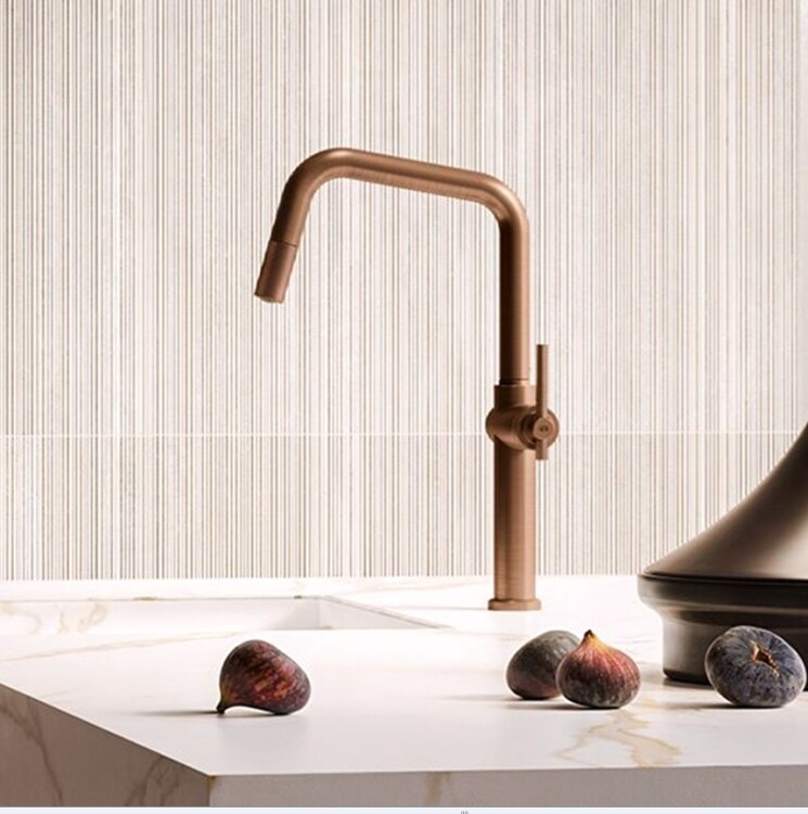 Смеситель для кухни, Gessi, Habito, тип открывания воды-однорычажный, тип регулирования воды-керамический картридж, монтаж-на раковину/столешницу, отверстия для монтажа-1, высота, мм-431, вынос излива, мм-237, тип излива-поворотный, тип подводки-гибкая, стандарт подвода воды-3/8", цвет-Warm Bronze Brushed PVD Смеситель для кухни, Gessi, Habito, цвет-Warm Bronze Brushed PVD